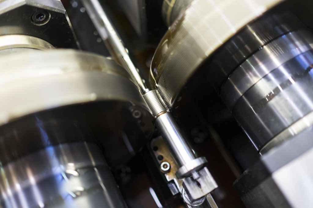Il processo di filettatura rullata in passata parte tipicamente dalla lavorazione di barre di acciaio, che vengono filettate per l’intera lunghezza.